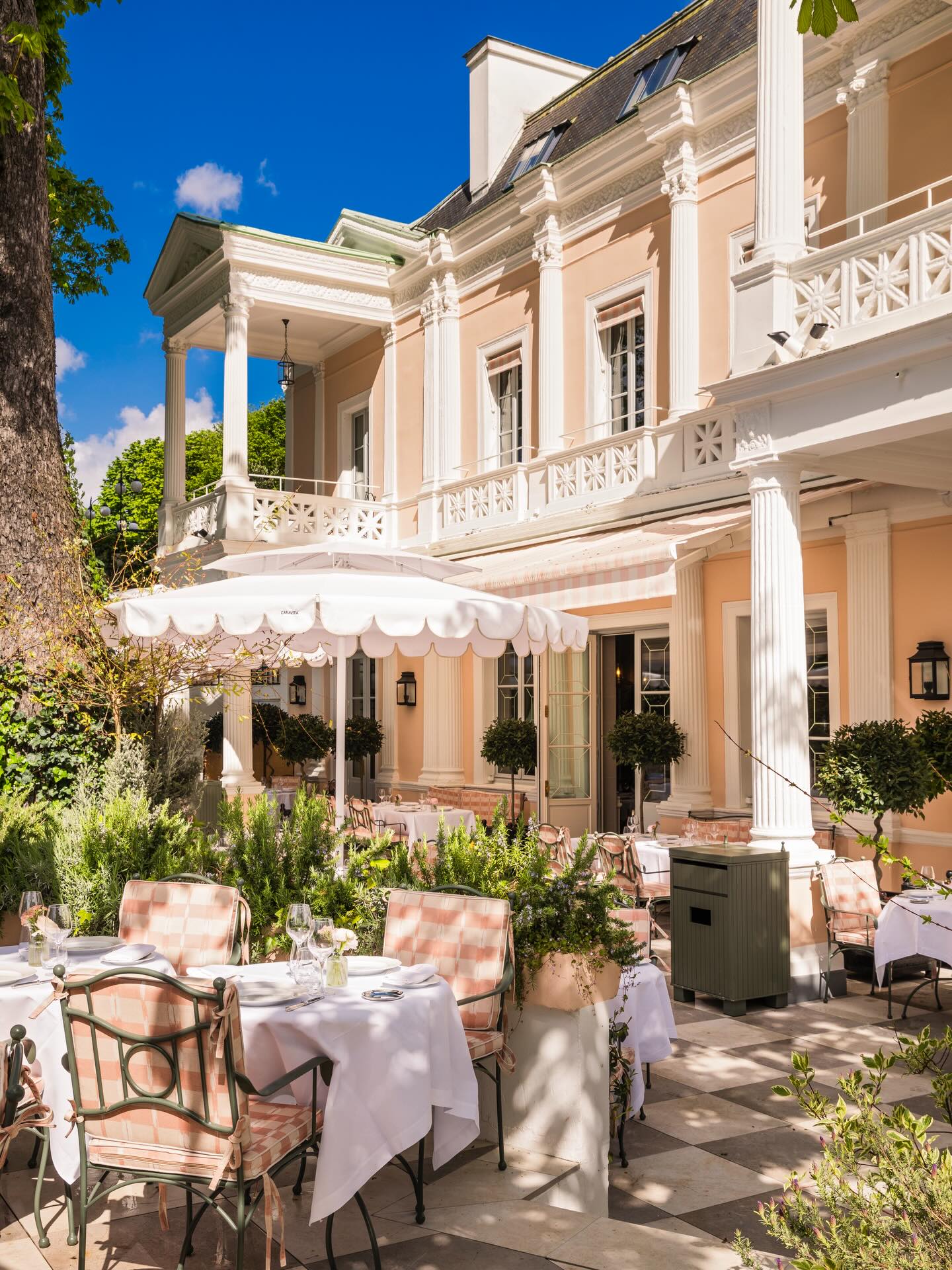 Since its recent reopening by Paris Society, the space has been refreshed without losing its identity. The terrace is one of the most beautiful in the city, surrounded by greenery and set back from the noise.